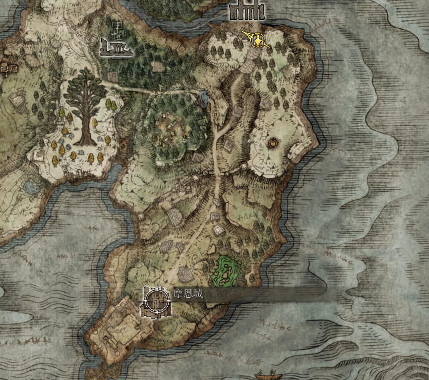 来到摩恩城,坐电梯上来直走,来到南瓜头这里,往右边走有梯子爬上来,来到楼顶会找到城主 艾德格,进行对话,他会暗示我们他不能离开,之后返回来到刚刚跳下来的那条城墙,直接走到尽头,往左边方向翻过就能看到一个赐福点了,之后就需要自己一直找路往下跳了,来到图下这个位置,打败Boss 狮子混种 并拿到一把武器 剑骸大剑,之后返回跟城主进行对话,他就会离开