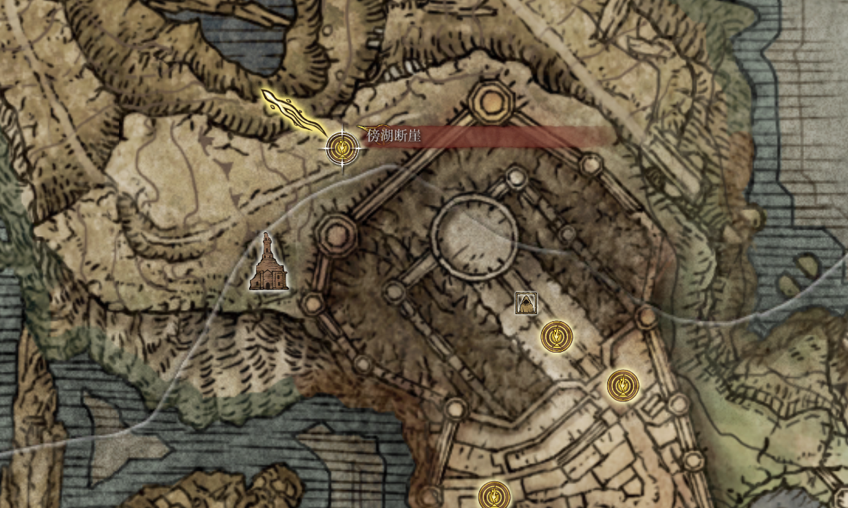 之后返回到 伊蕾娜 这里,会发现城主来晚了,伊蕾娜被杀害了,跟城主进行对话,对话中提到,城主会寻找凶手并进行复仇,之后推主线打败Boss 接肢-葛瑞克,在前往下一个赐福点的图中,有一条楼梯,跳下来后背方向就会有一个女巫跪在地下,再她旁边可以捡到一个重要的道具 夏玻利利葡萄 往前走,来到 傍湖断崖 赐福点,将葡萄交给赐福点旁边的NPC 海妲
