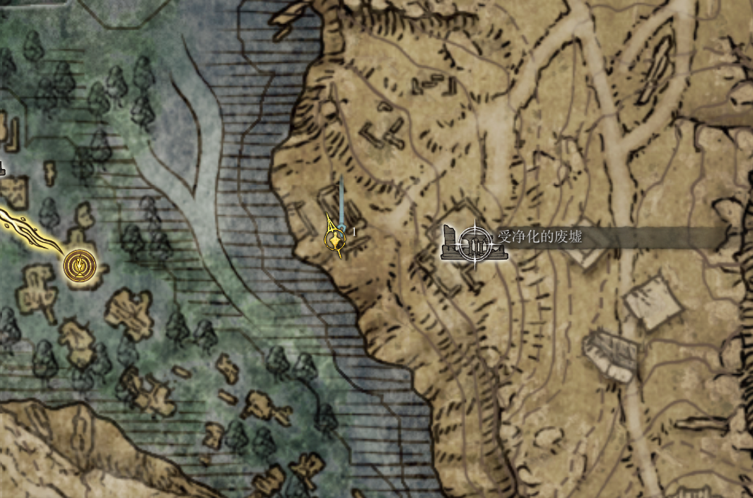 来到 受净化的废墟 地点,大门往前走,会有很多罐子的地方,有一块被木板盖住的地下室,进去地下室,可以拿到 第二颗葡萄 和 双指传说 ,来到图下标记的1号位置,找到 海妲 并将葡萄交给她,多次对话至重复