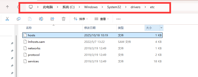 打开hosts的文件,以记事本的方式打开,下面为hosts的文件位置