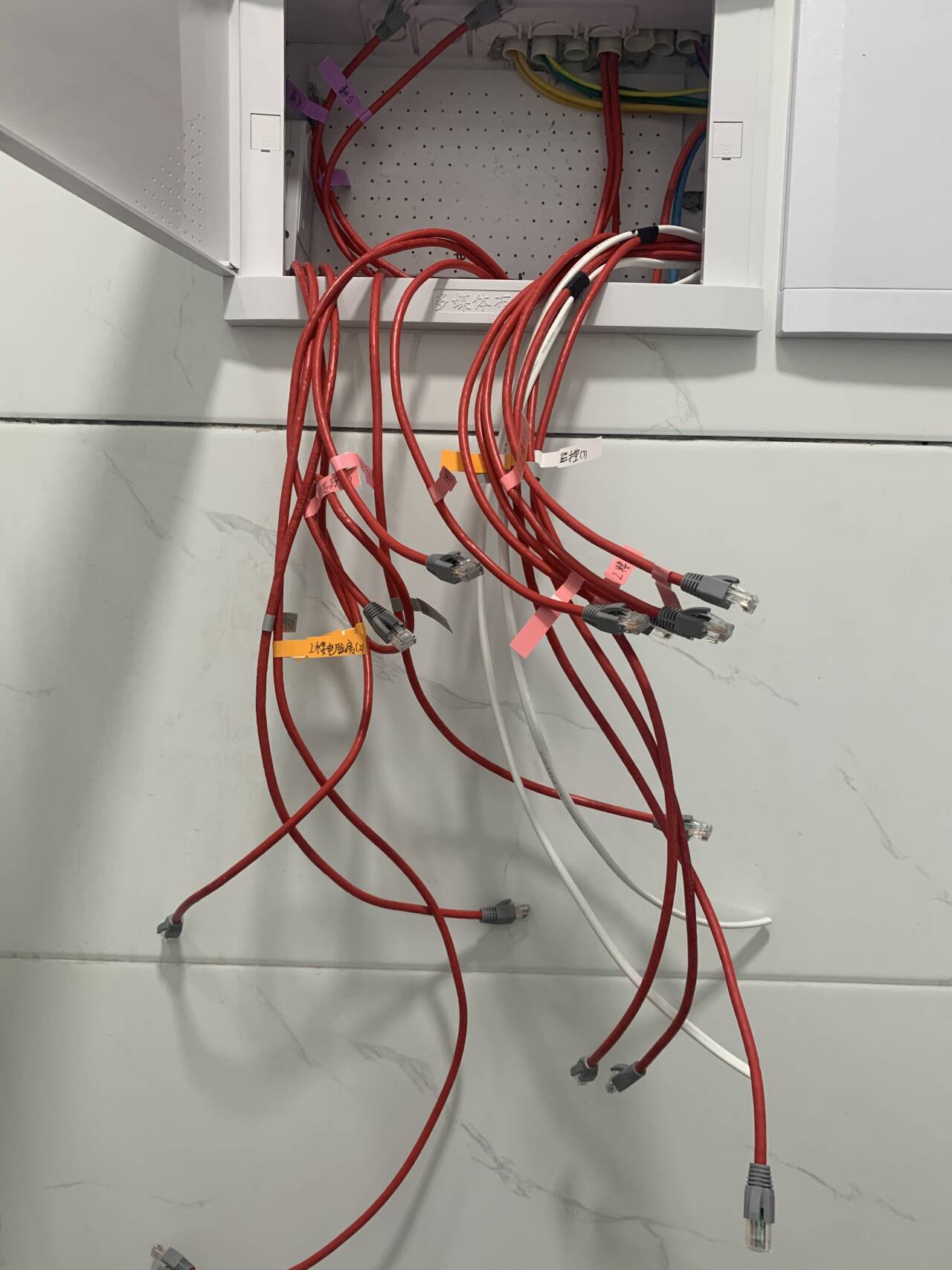 笔者家里比较大一点,但是箱子预留的空间小了,导致只能放一个交换机跟光猫,光猫接上交换机后再分发