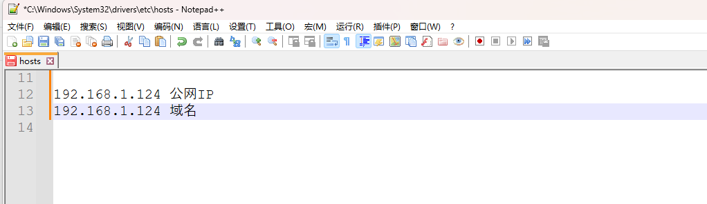 公网IP是: 113.xxx.xxx.xxx ,那就以下面的方式写上hosts这个文件的文本里面,如果你有域名则把公网换成域名