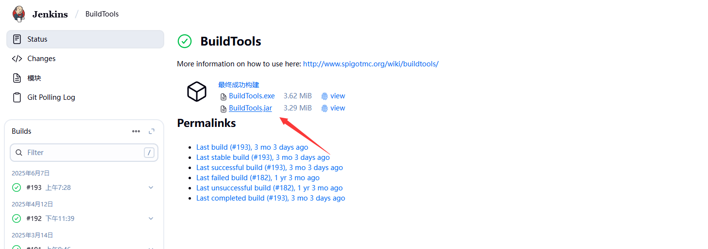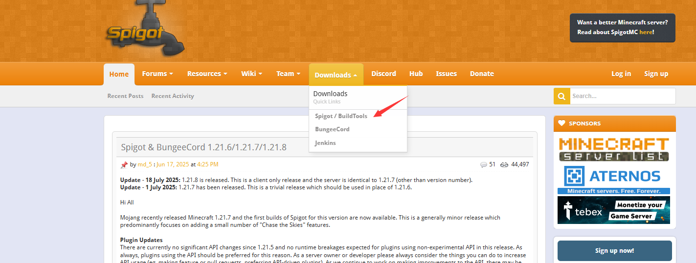 选项栏找到 Downloads 找到第一个 spigot/Buildtools