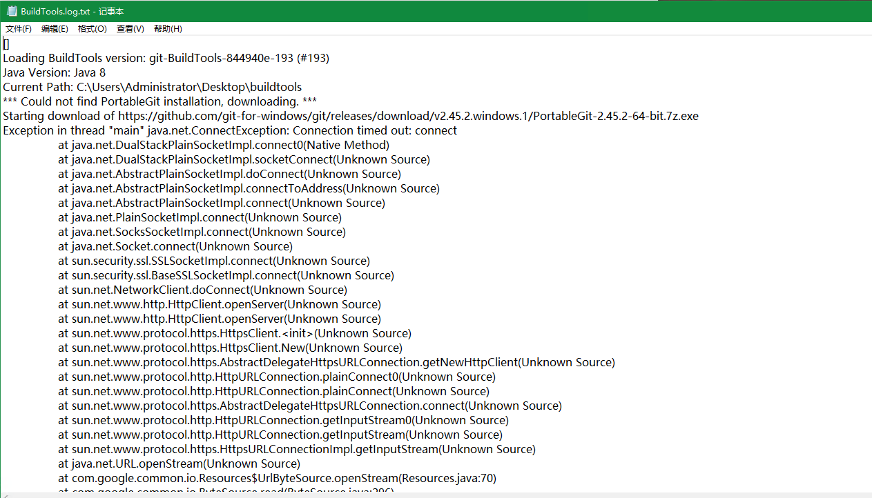 打开后需要稍等一会,等待文件下载完毕,如果自动关闭,用文件夹打开后缀 .log 的文件,出现以下的字体,这个表示网络环境不好,可能需要搭配加速器,科学上网等方式或者往下另外一种方法