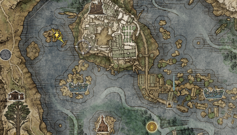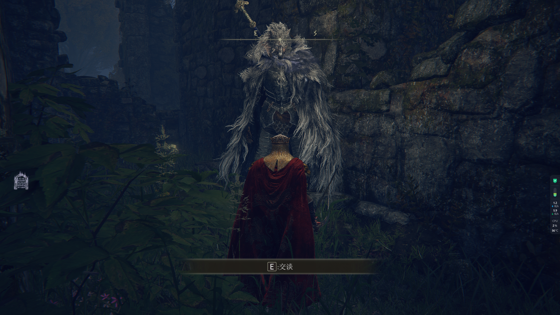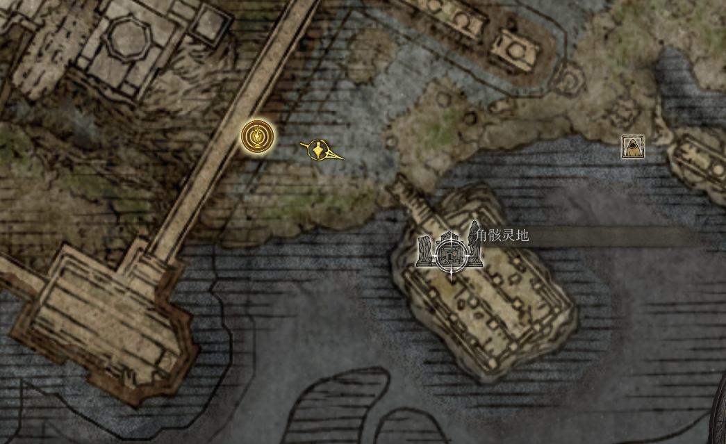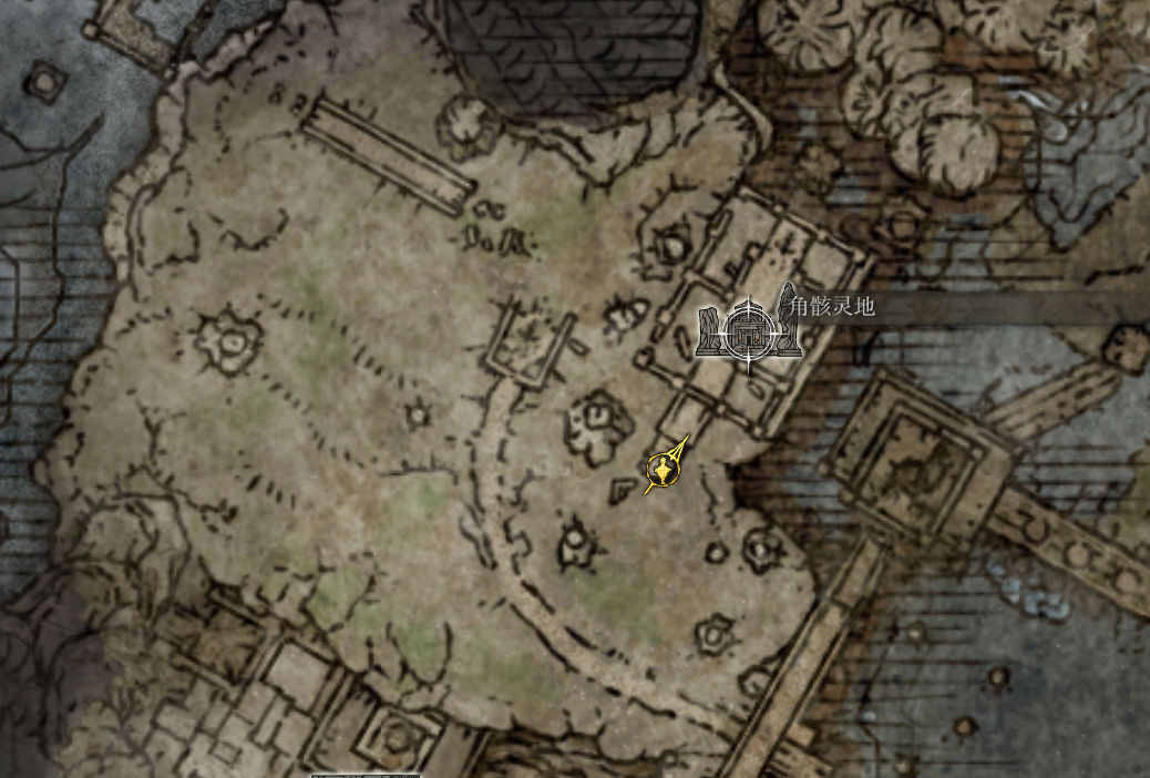 点亮完回到 角骸灵地 这里打Boss,图中右边还有一个人物标记是狼人