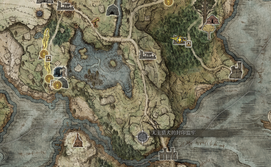 之后来到地图,无主猎犬的封印监牢,狼人追杀的叛徒就在这里,进来之后可以在监牢里面有个印记可以召唤狼人帮忙,打完之后会获得一把前期很好用的武器,猎犬长牙