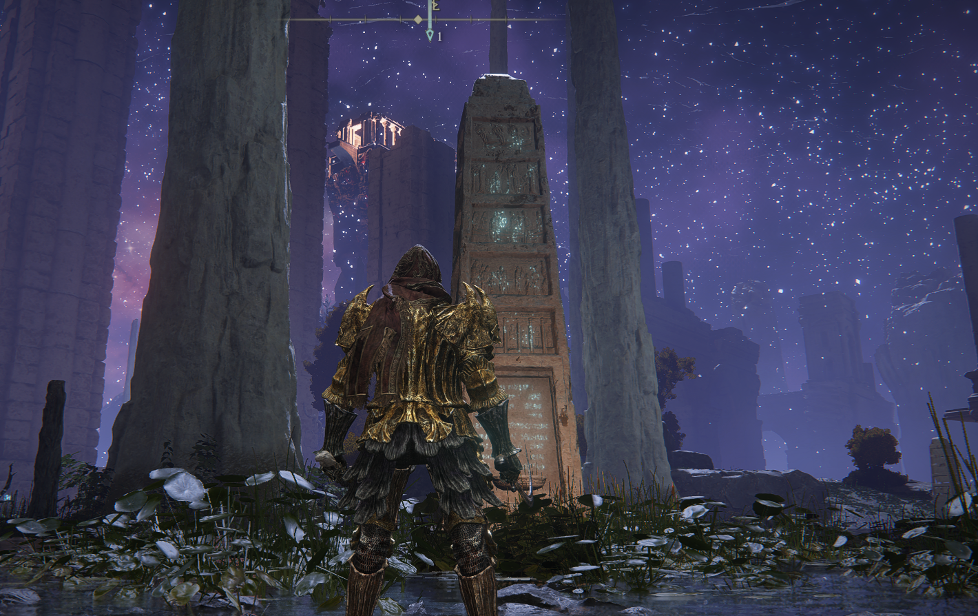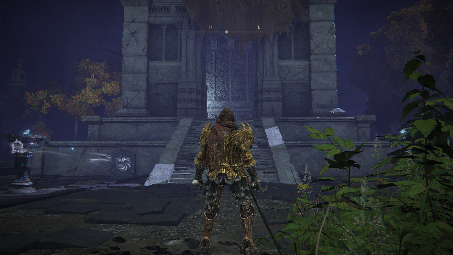 来到 黑夜神域 我们要找的宝藏就在 黑夜神域,一路走不要管铁球,直到来到一个赐福点,黑夜神域 往前走,再中间坐着大雕像的大门里面可以拿 永恒之城-诺克隆恩 的宝藏 "猎杀指头刀"
